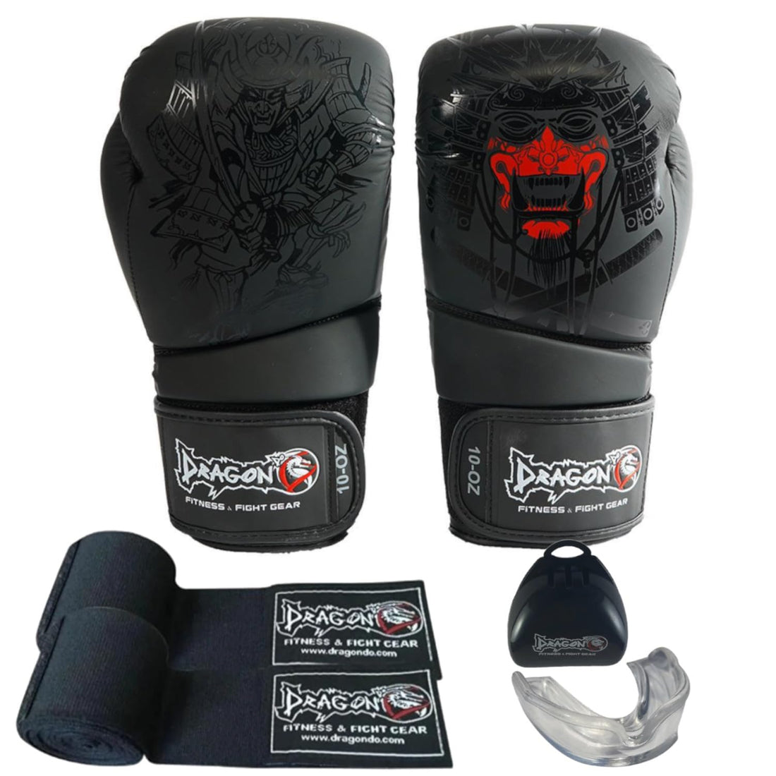 Yakuza Boxhandschuhe Muay Thai Kickboxen Sparring, M„nner Damen, Boxsack Punchinghandschuhe, Kickboxhandschuhe Kampfsport Training Schwarz, inkl. Bandagen und Mundschutz 3er-Set. (10 Oz)