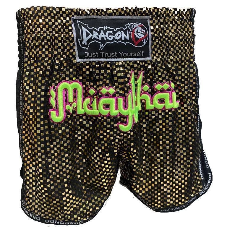 DragonDo MT3015 Muaythai-Shorts, Kickbox-Shorts, Trainingsshorts - Maßanfertigung. - Hergestellt aus speziellem, vergoldetem Stoff. - Seitliche...